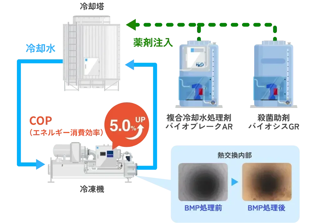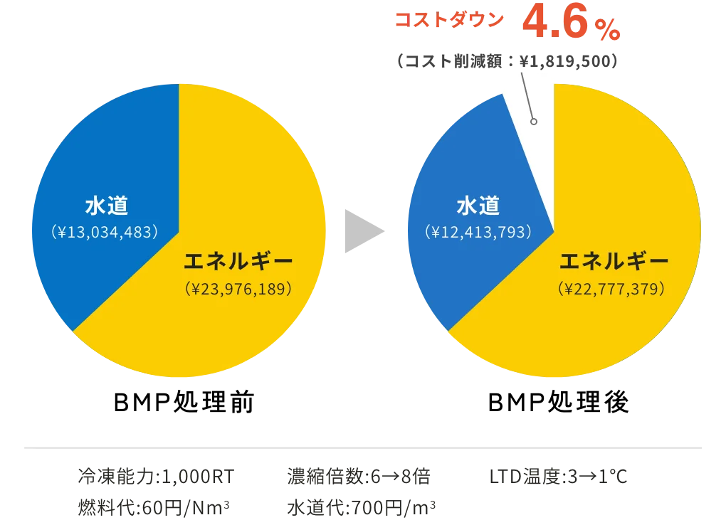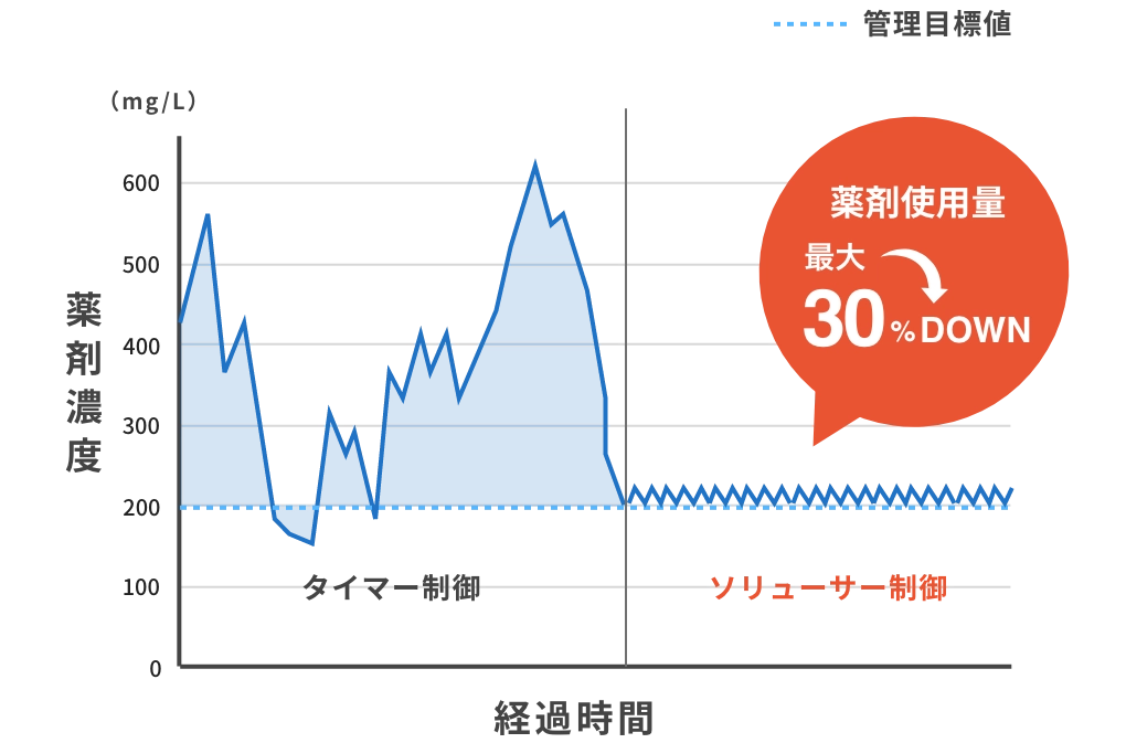薬剤使用量の無駄を省き、BMP処理との併用で高い省エネ効果が得られます。