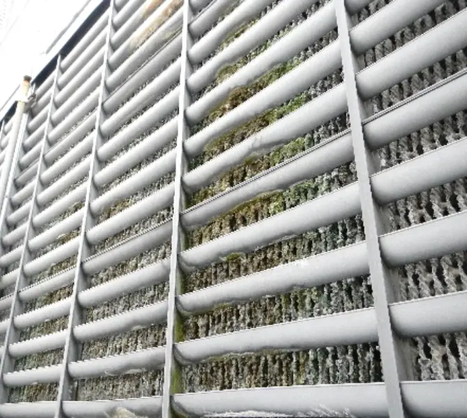 冷却塔でスライムや藻が発生しており、衛生面が気になる