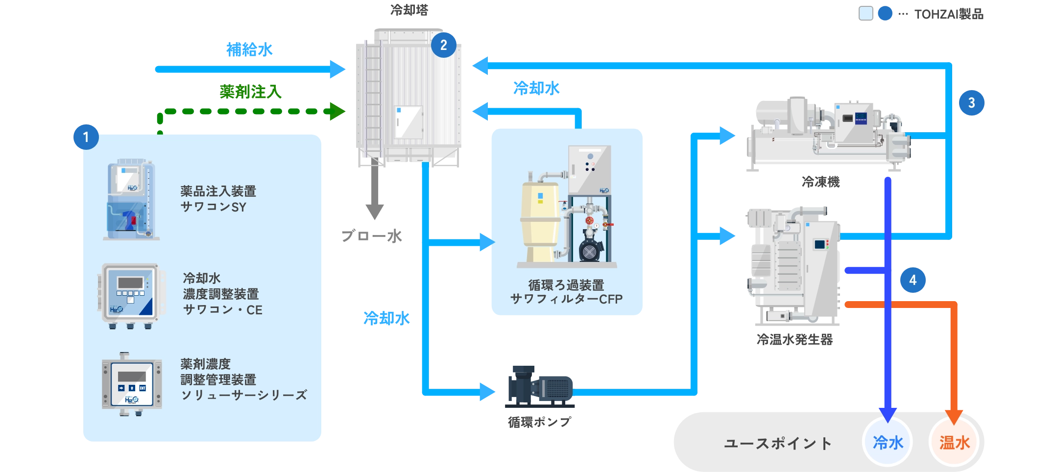 冷却水・冷温水の水処理はTOHZAIにお任せください。